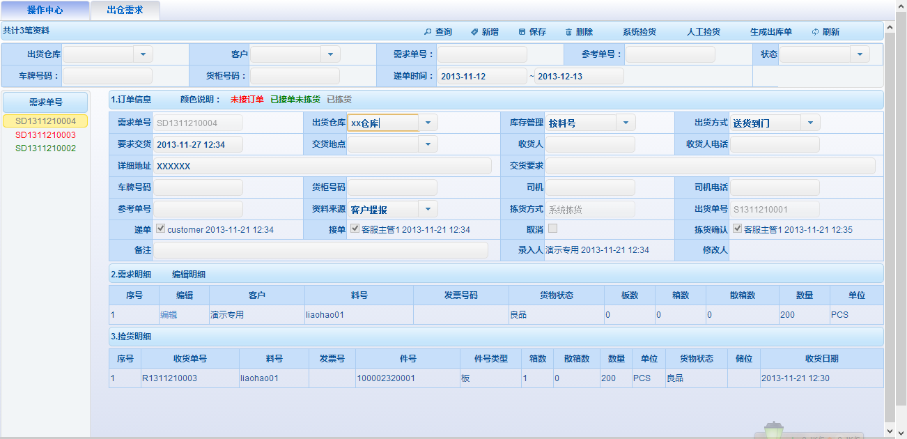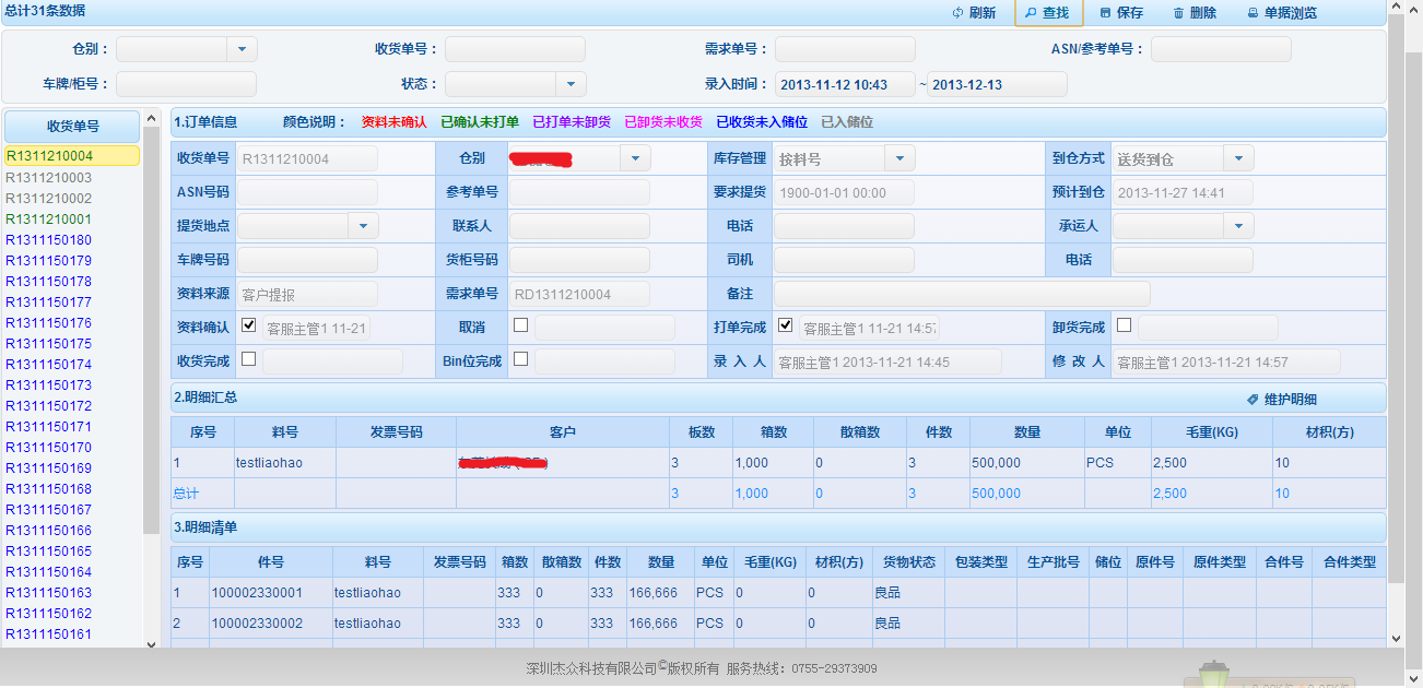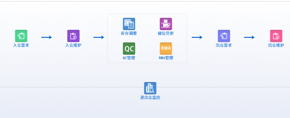 支持CMI、VMI倉庫管理模式,同時支持保稅、非保稅倉庫形態(tài),兼顧平面?zhèn)}、立體倉運作方式,具有預(yù)約提貨、收貨、自動分配庫區(qū)、上架策略、盤點、QC、先進先出策略、下架策略、裝車、條碼管理、結(jié)算管理等功能